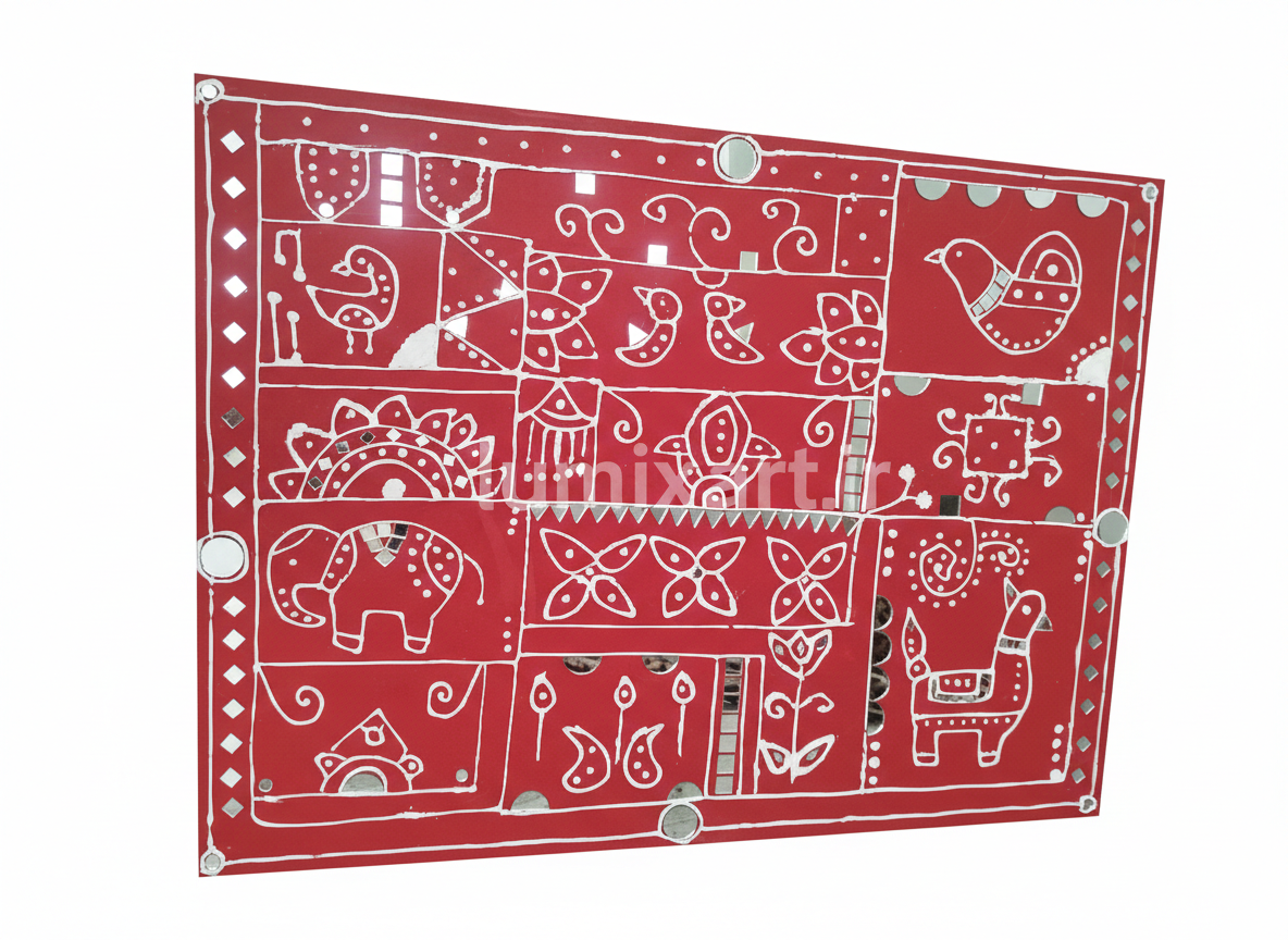 جنس: عکس با کیفیت مات، نصب شده روی شاسی ۸ میل، کار شده با متریال و جواهرات مرغوب