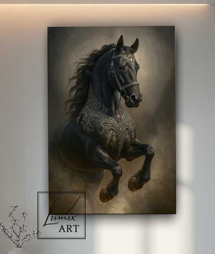 تابلو دکوراتیو میکس مدیا جواهر نشان مدل بلک هورس