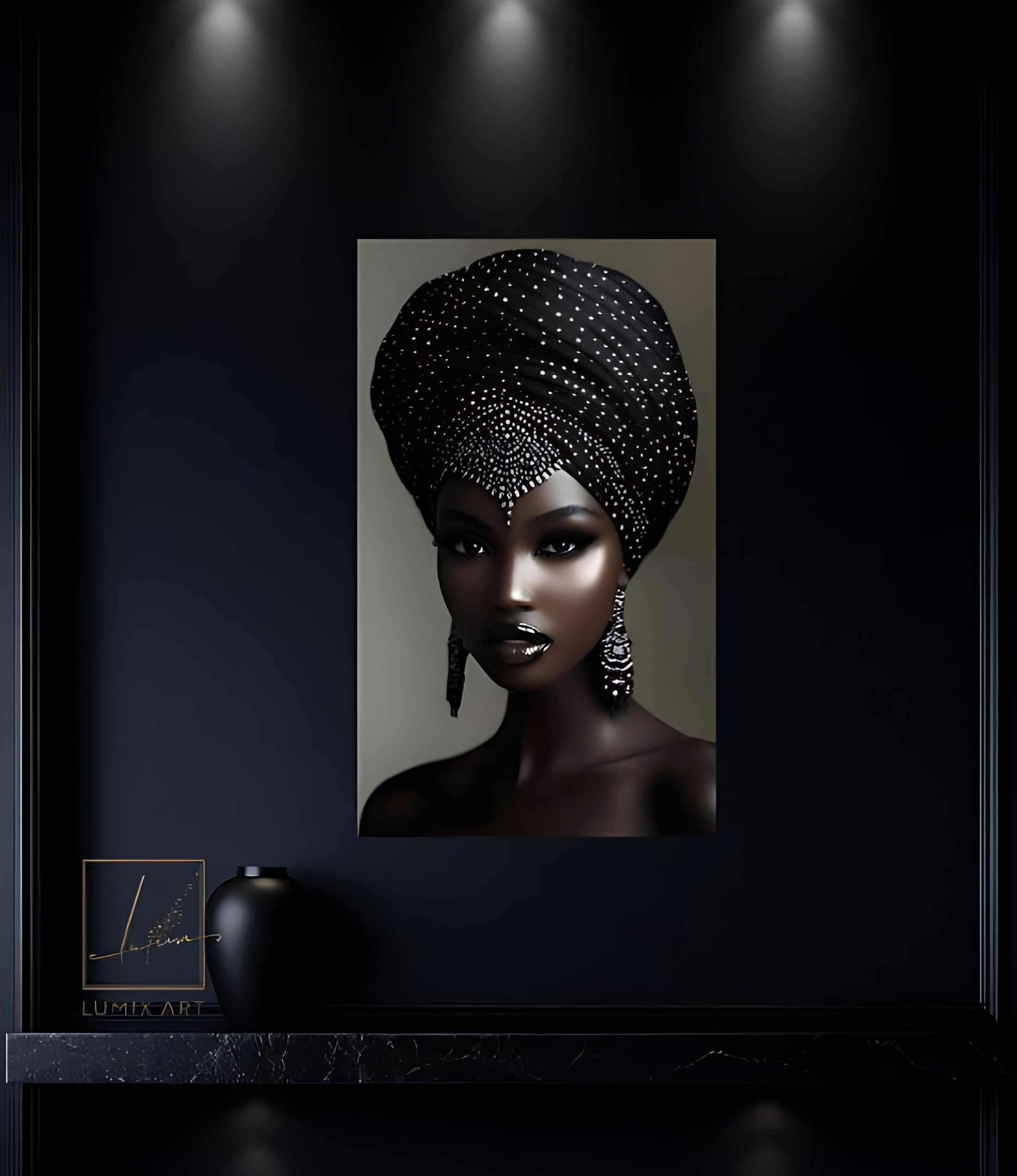 تابلو دکوراتیو میکس مدیا مدل زن سربند دار، یک تابلوی چشم گیر که هم در روشنایی روز هم در تاریکی شب، زیبایی خودشو حفظ میکنه