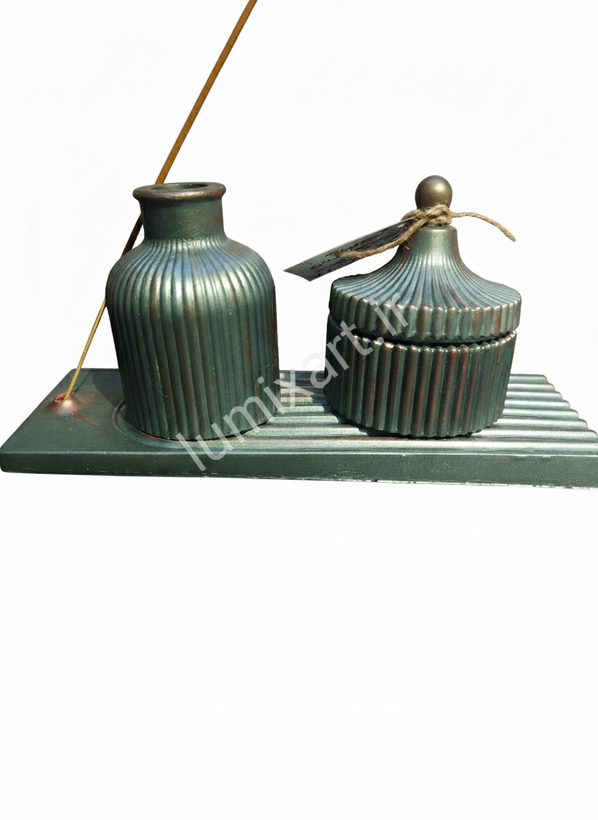 مدل: سه تکه جاعودی تکی، جای عودها، جای شمع(پر شده با شمعپودری و فیتیله چوبی)